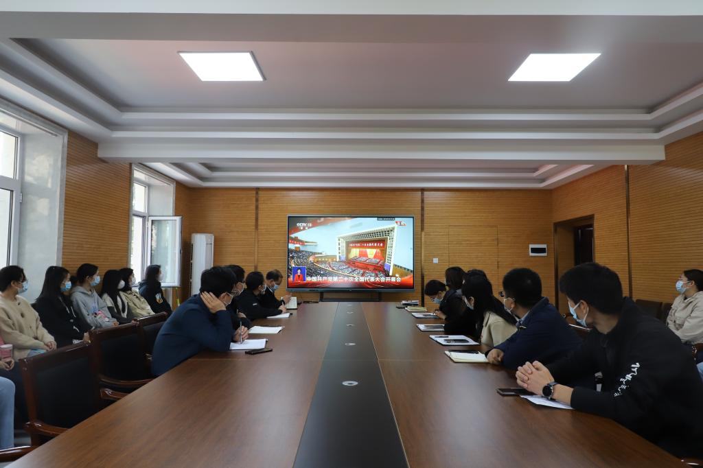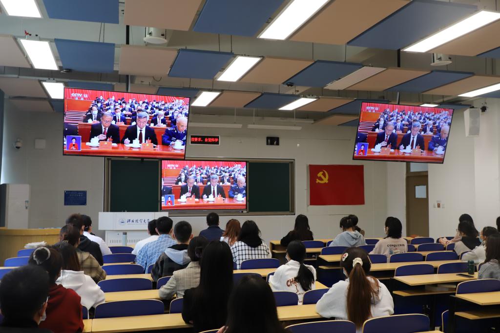 10月16日上午,太阳成集团tyc234cc党委组织全院党员师生观看了中国共产党第二十次全国代表大会开幕会直播。太阳成集团tyc234cc班子成员及全体行政支部和学生代表于学院二办301线下集中观看本次直播。全体2022级新生分别于第三教学楼A202、A203、A204和A208观看,学生第一第二党支部于第三教学楼A103观看,其余党支部和班级组织集体线上观看。