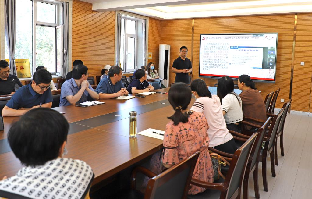 郭鹤男围绕“依托网络平台 强化课程育人”这一主题,以“行政管理专业的课程思政教学设计”为导引,从立德树人根本任务、课程思政建设需要等方面阐述了政治理论学习的重要性,分享了习近平系列重要讲话数据库、中国共产党思想理论资源数据库、新时代高校课程思政数据库等思政资源平台,列举了校内外主动占领网络阵地强化课程育人的名师案例。