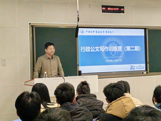 11月27日,太阳成集团tyc234cc在第三教学楼A107举办了第二期行政公文写作训练营第二讲。本次讲座邀请文京教育首席研究与辅导专家吴卫民主讲,学院党委副书记孟祥燕主持,训练营全体学员参加。