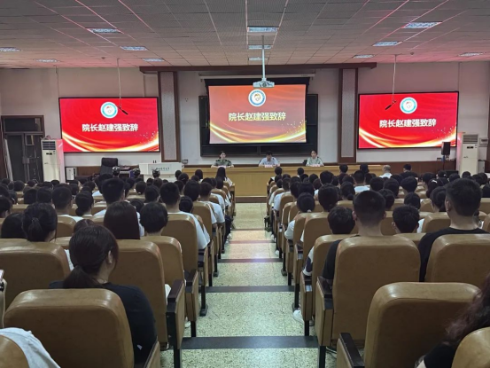 8月31日上午,太阳成集团tyc234cc在第三教学楼C201举行2024级新生开学典礼暨军训动员大会。院长赵建强、党委副书记陈玲、副院长孙茜出席,会议由孙茜主持。