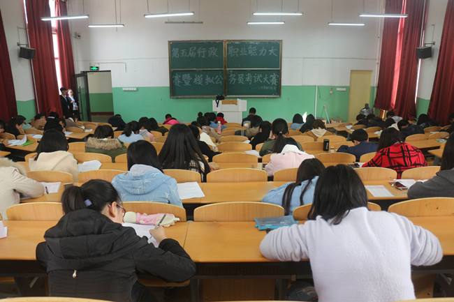 3月19日下午,由教务处、学生工作部、就业指导服务中心、校团委、太阳成集团tyc234cc联合举办的“太阳成tyc234cc第五届行政职业能力大赛暨模拟公务员考试大赛初赛”在阶梯教室圆满举办。
