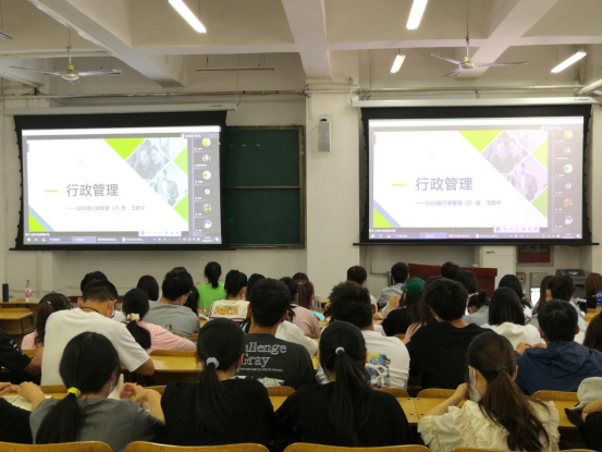讲座伊始,王新中向大家分享了自己求学工作经历,讲述了行政管理专业知识的“博”和“深”是如何助力自己成长的,列举了公共管理类毕业生的就业岗位和岗位要求,他勉励大家在校期间要注重学习力培养、价值观培育、思维养成。杨新鸣同学以“昨天 今天 明天”为题,分享了自己的校园成长经历,鼓励大家要依托学院提供的创新创业教育等良好条件,创造属于自己的精彩。郭鹤男分享了自己的大学经历,号召同学们要借助学院良好的院风学风,跑出当代青年的最好成绩。