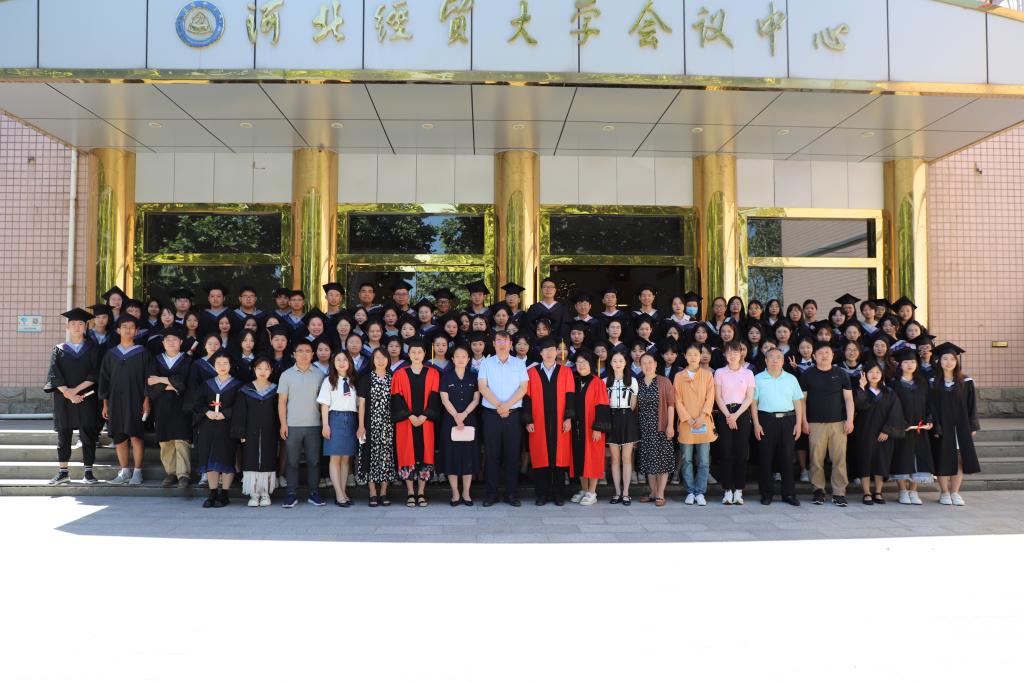 各专业教师通过视频向2023届毕业生送出了最诚挚的祝福。优秀校友2020届行政管理专业毕业生孙琅琅、毕业生代表谢佳萌、在校生代表徐可欣分别作了发言。赵建强逐一为毕业生拨穗正冠,并合影留念。学院为毕业生制作了《一起走过的日子》、《致经贸的一封信》等视频短片,发放了为纪念建校70周年而制作的明信片,通过视频和图片带领毕业生重温校园生活,感恩所有遇见。