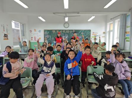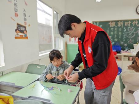 本次活动采用红色故事宣讲和艺术实践的形式深化红色教育。宣讲团成员化身历史讲述人,以生动鲜活的语言,通过革命故事讲述、历史场景再现等形式,带领小学生们系统了解遵义会议的关键转折意义;随后开展的《红星歌》教唱环节,志愿者们通过歌词解析、旋律示范,引导小学生们理解歌曲中蕴含的理想信念;艺术实践环节将创意注入红色传承,志愿者带领小学生们制作手工绒花,大家将绒芯轻轻捻出花瓣弧度时,金属丝在掌心传递的不仅是工艺技巧,更是对“百折不挠”革命精神的可触化解读。