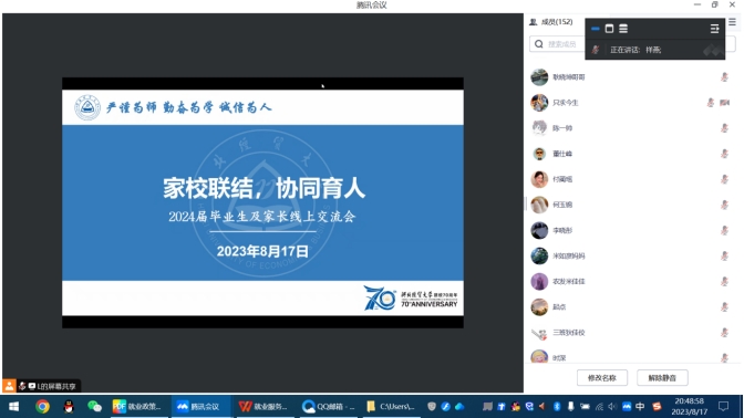 8月18日晚,我院举办“家校联结,协同育人”2024届毕业生及家长线上交流会。会议由公管学院党委副书记孟祥燕主持,学院就业联络员、毕业生辅导员、2024届毕业生及家长参加会议。