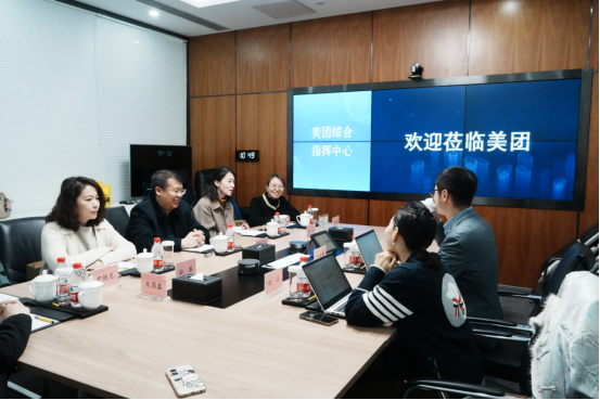 11月20日,太阳成集团tyc234cc党委书记何昱、副书记陈玲、副院长孙茜及就业联络员张素桥带领劳动与社会保障专业本科生和研究生,前往位于北京市美团总部开展访企拓岗专项行动。美团研究院院长厉基巍,研究员赵磊陪同参观和座谈交流。