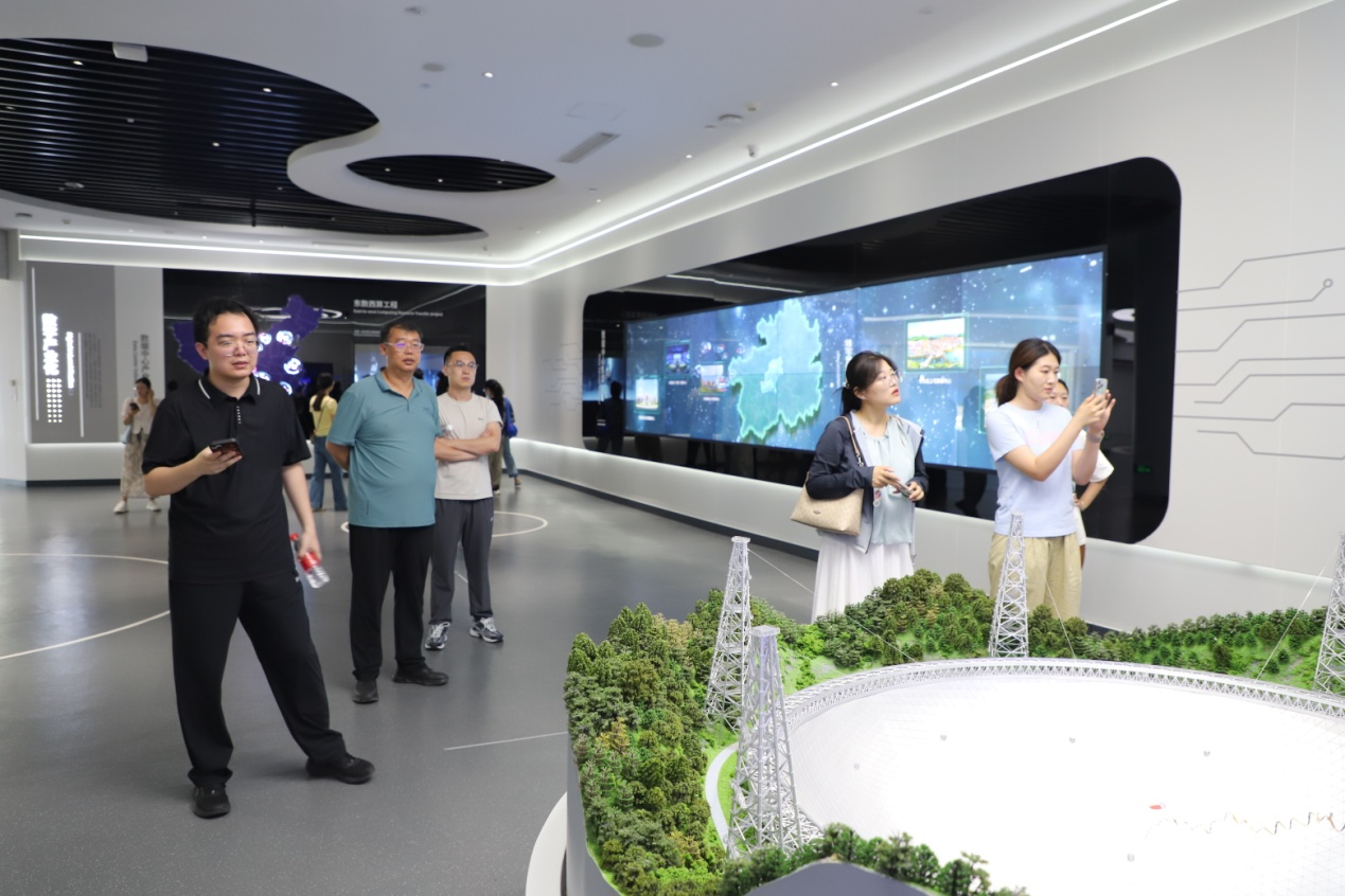走进国家大数据综合试验区展示中心,在讲解员的引导下,师生们沿着“数据汇聚-技术赋能-场景落地”的展示脉络,系统了解贵州依托得天独厚的自然条件与政策优势,实现从“西南地理枢纽”到“全国数据枢纽”的跨越式发展历程。从“云上贵州”政务平台打破部门数据壁垒,让群众“少跑腿、数据多跑路”,到大数据在民生服务领域实现社保缴费“掌上办”、教育资源“精准匹配”,再到产业升级中通过数据监测助力企业降本增效、生态保护里用卫星数据实时监管森林覆盖率,一个个鲜活案例让师生们直观感受到数字技术对公共治理模式的重塑力量。