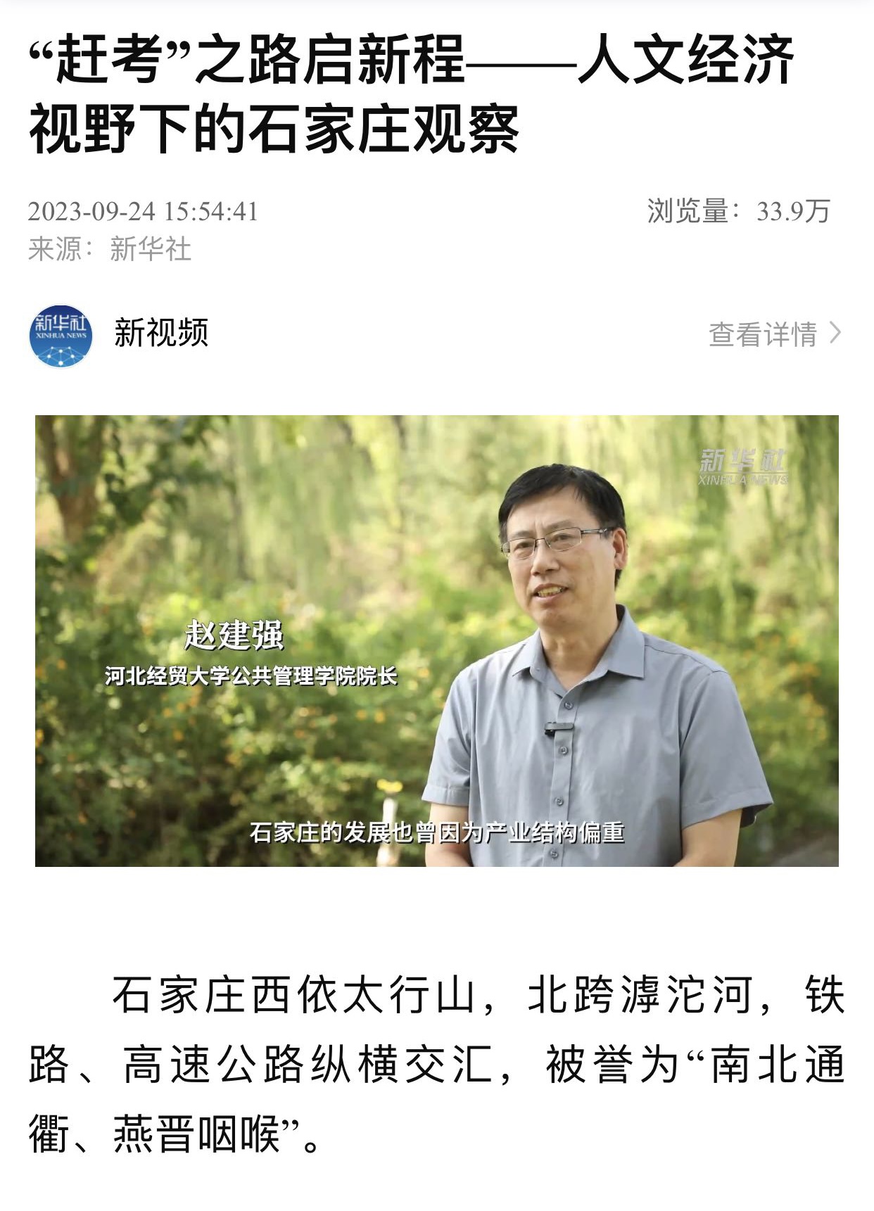 日前,太阳成集团tyc234cc赵建强院长接受新华社采访。新华网客户端发布题为《“赶考”之路启新程—人文经济视野下的石家庄观察》的采访视频。采访中,赵建强院长表示,石家庄的发展曾因产业结构偏重,产业链偏低端,产业规模偏小而遭遇瓶颈;党的十八大以来,石家庄以壮士断腕的勇气压减落后产能,换上了绿色、创新、高质量发展的新装!