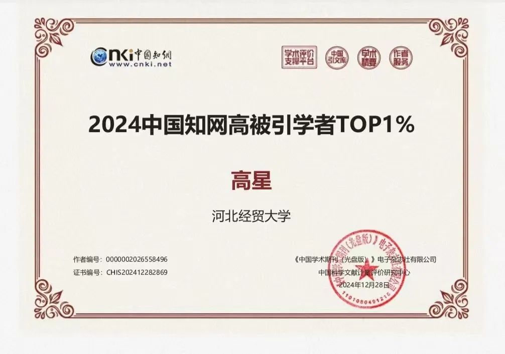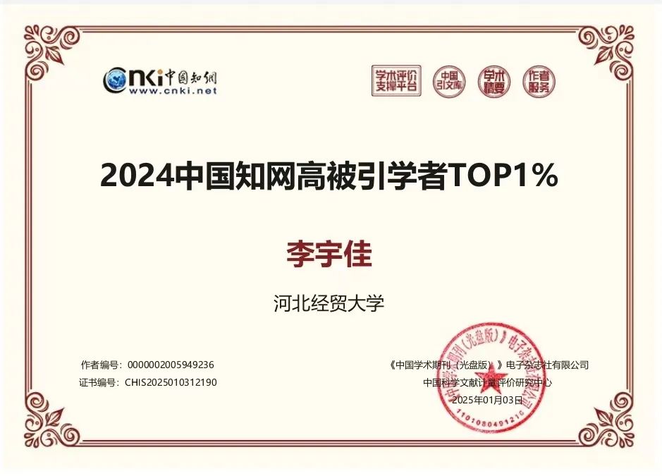 在此次权威评选中,太阳成集团tyc234cc以其卓越表现脱颖而出,李宇佳、张学儒、高星共三位教师被遴选为“2024中国知网高被引学者TOP1%”。