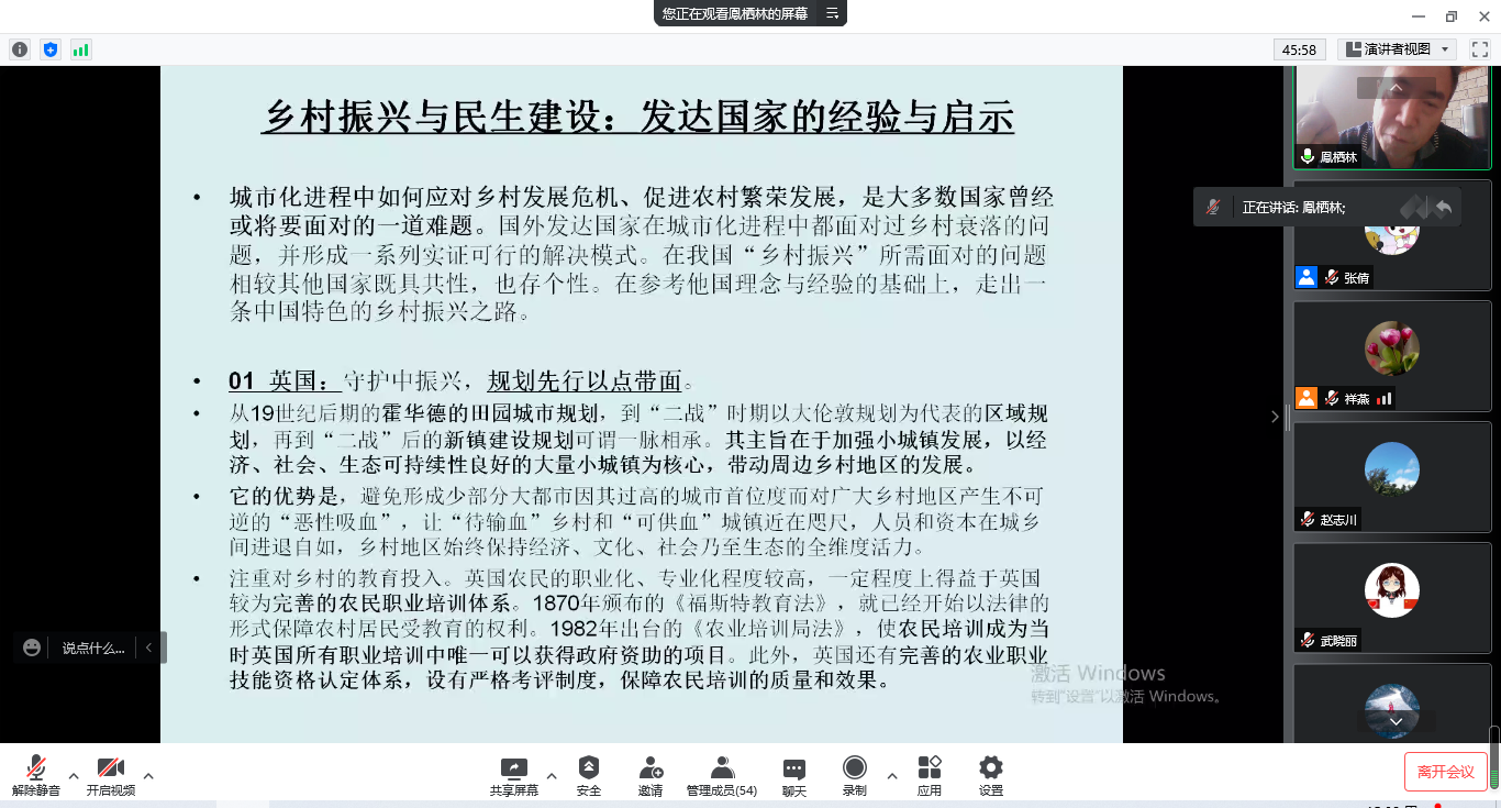 5月9日下午,太阳成集团tyc234cc邀请蔺丰奇教授通过腾讯会议做题为“聚焦高质量的民生建设,推进乡村振兴”的学术讲座,教师及学生共50余人参加。