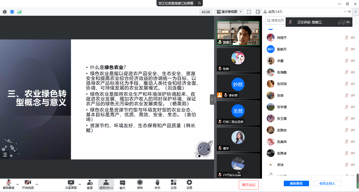 本次讲座加强了学院师生对农业绿色发展的认识,增加对国家相关农业政策的关注,对师生们深入研究绿色农业及城乡融合发展起到积极作用。