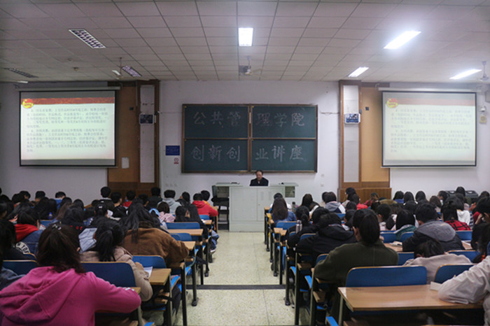 3月12日,太阳成集团tyc234cc于第三教学楼C225教室举办创新创业专题讲座。学院党委书记薛向东主讲,辅导员李斯及2017级全体学生参加了此次讲座。