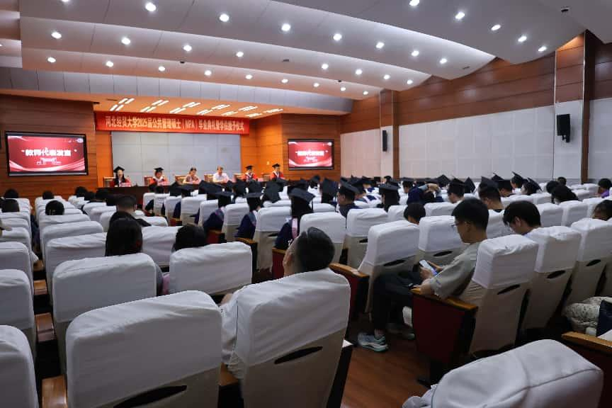 仪式上,院长赵建强首先代表学院向全体毕业生致以热烈祝贺和美好祝福。他深情回顾了同学们三年来的成长与奋斗历程,高度赞扬了大家克服工学矛盾、追求卓越的坚韧精神。赵院长强调,MPA教育的核心使命在于培养具备现代公共管理理论和实践能力的高层次应用型人才。他寄语毕业生牢记“公共”使命,将所学转化为推动治理现代化、服务人民福祉的实际能力,勇担时代重任,展现河北经贸公管人的风采与担当。同时,他还勉励大家坚持终身学习、勇于创新,努力成为公共价值的坚定守护者与引领者。