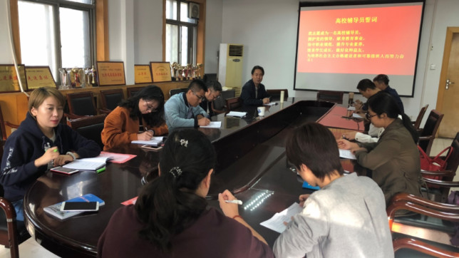 会议最后,全体辅导员庄严宣誓,志愿成为一名高校辅导员,为培养社会主义合格建设者和可靠接班人而努力奋斗!