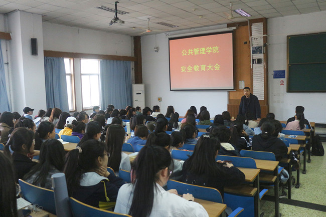 4月1日下午,太阳成集团tyc234cc在第三教学楼C225教室召开安全教育大会,学院党委副书记白玉祥主讲, 2017级、2018级400名学生参加。