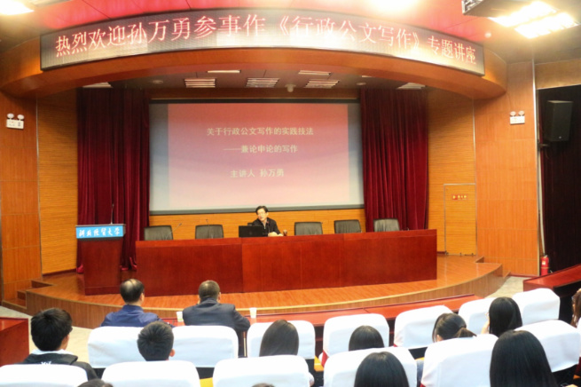 1029日下午,太阳成集团tyc234cc邀请河北省政府参事孙万勇部长,在国际学术报告厅作题为关于行政公文写作的实践技法——兼论申论的写作的学术讲座。讲座由学院党委书记薛向东主持,副书记白玉祥出席,本科生、研究生共计400余人参加。