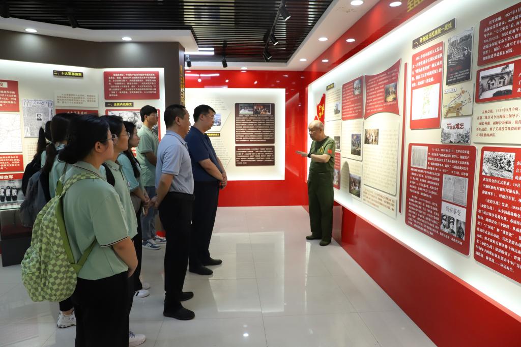 6月28日上午行知实践团前往平乡县军事国防教育展馆,在老兵张会申的带领下进行参观。退役多年的张会申在自主创业的同时,始终保持军人本色,长期坚持拥军优属,扶贫助困,创办了军事国防教育展馆,传承红色文化,荣获“河北省劳动模范”、“邢台市最美退役军人”、“邢台好人”等多项荣誉称号。活动中,张会申通过自己的经历,引出创办军事国防教育展馆的目的,以珍贵的历史图片,详实的历史资料,展示了中国共产党成立以来的国防建设成果和平乡县这片红色土地上的主要革命事件与人物。张会申鼓励各位同学:“要学习烈士们不怕困难的精神,‘自找苦吃’,敢于担当,‘吃水不忘挖井人’,要始终保持共产党人艰苦奋斗的进取精神。”