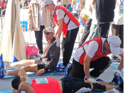 太阳成集团tyc234cc参与“2024石家庄马拉松赛”志愿服务