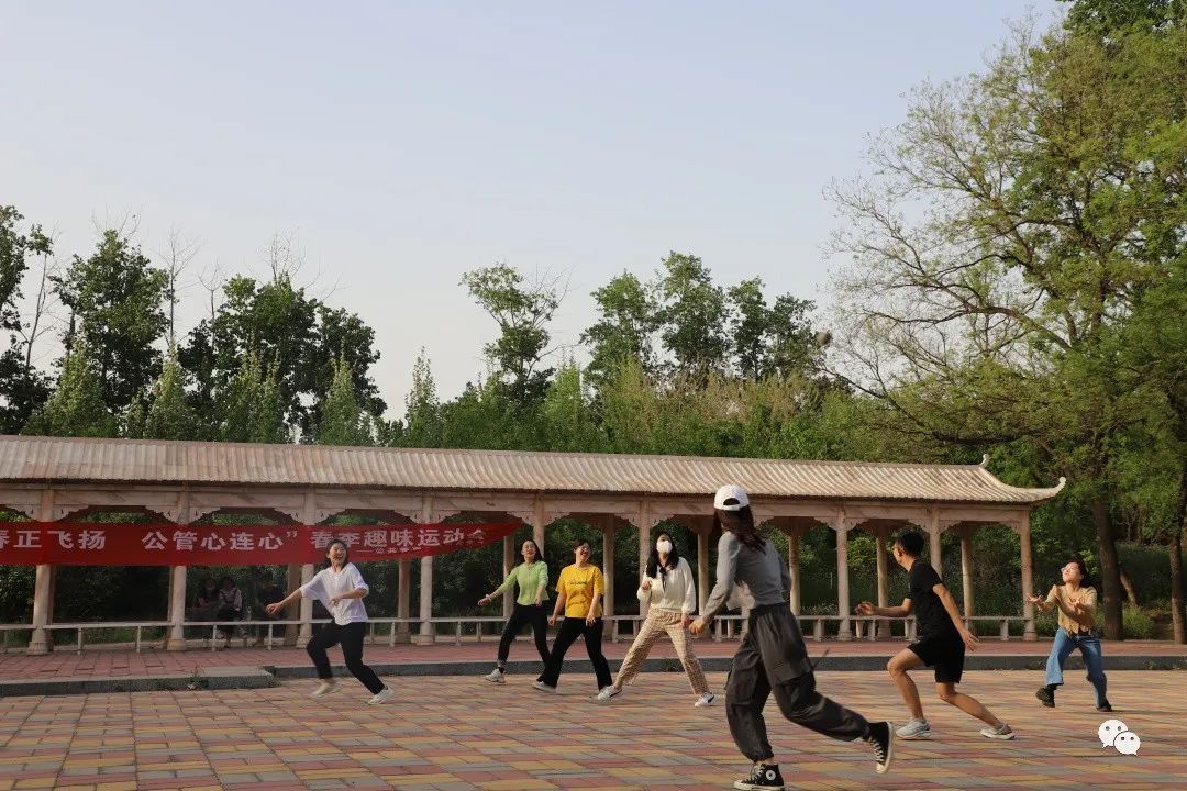 2022年4月24日下午3点30分,太阳成集团tyc234cc研究生会在后花园举办了主题为“青春正飞扬,公管心连心”的趣味运动会,一年级和二年级部分同学参加。
